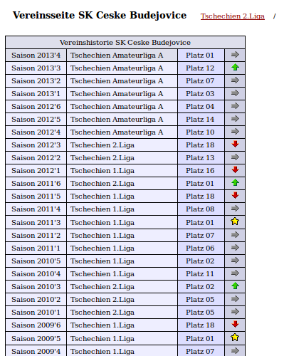 Ich schließe mich mal an und füge hinzu, dass auf der Vereinsseite auch die Anzeige der Platzierungen seit 2010'2 nicht stimmt. Dort steht der Platz von 2010'1 noch einmal und dann zieht sich der Fehler bishin zur aktuellen Saison (siehe Screenshot).