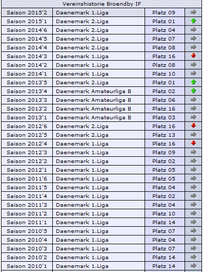 Offenbar sind noch nicht alle Vereine mit der korrekten Historie verlinkt: z.B. wird bei Brande (Dänemark 1. Liga) die Historie von US Valenzana (Italien A) angezeigt. Das ist der einzige Verein der ersten beiden dänischen Ligen, bei dem das auftritt. Bei US Valenzana hingegen wird die korrekte Historie angezeigt.