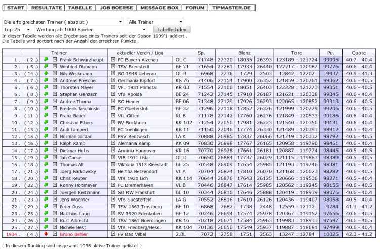 Die ewigen Trainerrankings sind seit dem letzten Saisonwechsel komplett zerschossen, s. Anhang